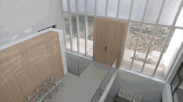 我們的房子體量很大,1200平米,是一個C字型結構,於是在C字的中庭位置被放入了一個「陽光房」。它從地下一層到地上二層有9米高,都是玻璃結構。
