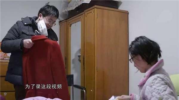 化療後的張麗君,很是疲倦和虛弱,但為了錄影片,她特意換上喜慶的紅大衣,努力表現出很興奮的樣子。