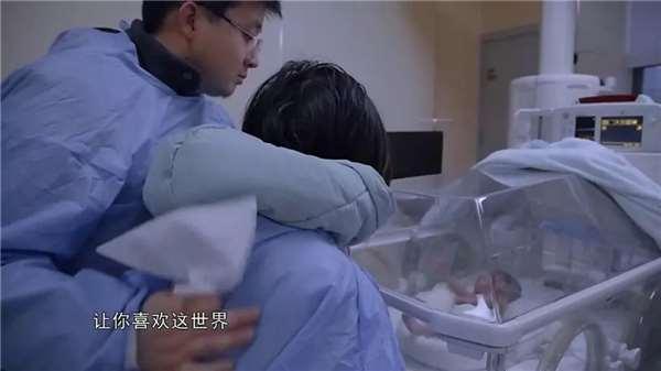 去看孩子,妻子唱著歌流淚,他安靜地給妻子擦去眼淚,輕扶她的背安慰。
