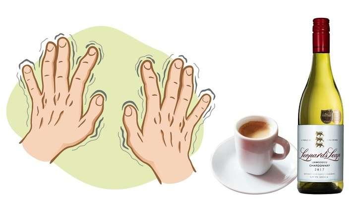 ▼手抖:這可能是帕金森氏症等嚴重疾病的徵兆,一定要馬上去醫院檢查。酗酒、喝太多濃咖啡、焦慮、壓力大等等,也可能導致手抖。