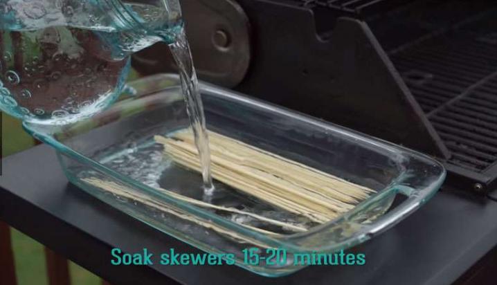 3. 把竹籤放在水中浸泡15-20分鐘,然後再去串烤肉或者蔬菜就不會滑落下來了哦!