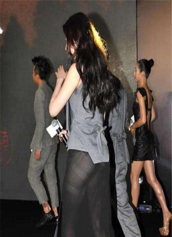 這件裙子非常的透明,尤其是在燈光的照射下,能清楚的看到劉亦菲肉色的“底褲”,一旁的鄧超也時不時的偷瞄劉亦菲,看的移不開眼!