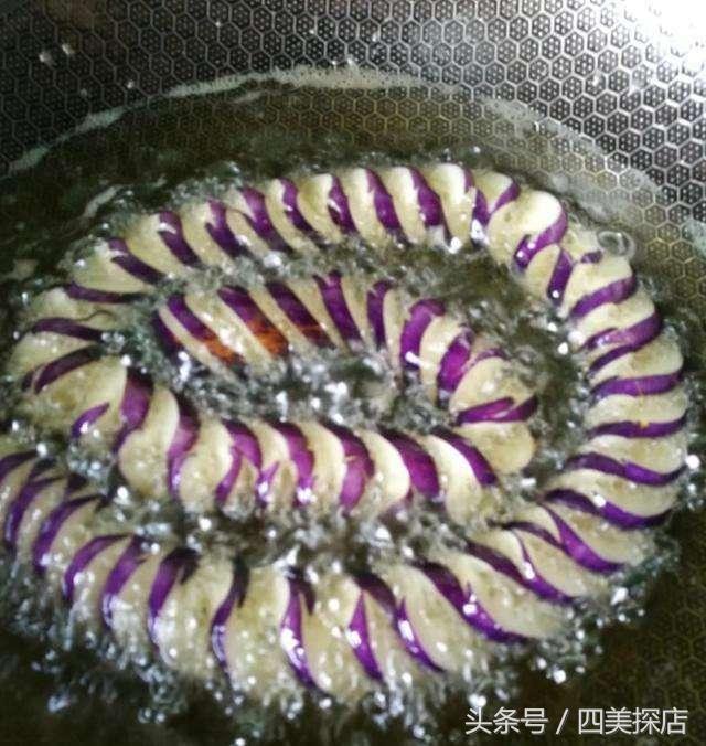 6、然後開始炸茄子。