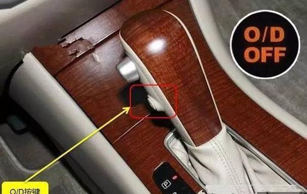 “O/D”鍵,其實是Over-Drive的縮寫,這代表的是超速檔,如果你按下這個按鍵,儀錶盤上的“O/D OFF”指示燈就會亮,變速箱就不能掛到超速擋上了,只能在1、2、3擋切換。