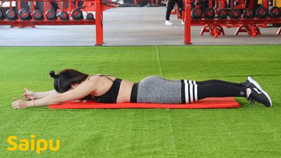▼5. 俯臥抬起:俯臥在墊子上,兩腿伸直,雙手伸直放在頭部兩側,握拳拇指向上;吸氣準備,呼氣腹部收緊,背部發力帶動手臂向上抬起,吸氣慢慢還原。重復15-20次,做4組。