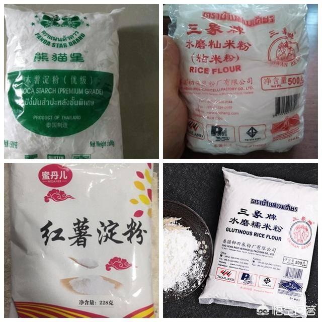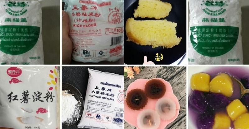 木薯粉、地瓜粉屬於澱粉類,但是中式烹飪我們最常接觸到的是玉米澱粉,常用於勾芡。而粘米粉、糯米粉都屬於米粉,粘米粉是各種大米中糯性最低的粉;而糯米粉黏度就較高。