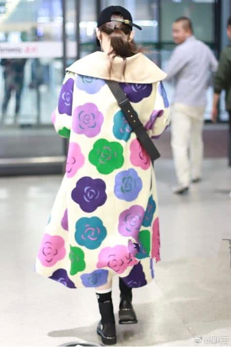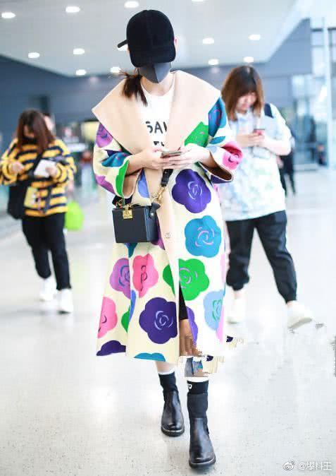 只見她身上披著一件大花風衣,腳上踩著一雙黑色短靴,臉上戴著黑色口罩,頭上也戴了個黑色帽子。