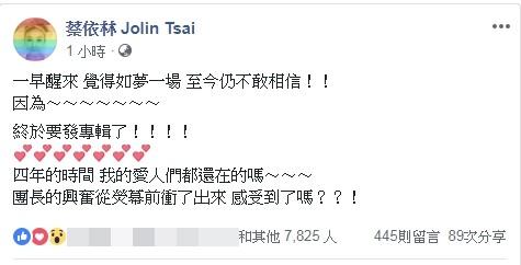 根據《ETtoday星光雲》報導,蔡依林12日突然在臉書上寫「一早醒來覺得如夢一場,至今仍不敢相信!!因為~終於要發專輯了!」,這也是她繼2014年發行《呸》之後,睽違了4年再度推出新作品,言詞間可以感受到蔡依林的興奮與激動,粉絲們也都驚呼「天阿!終於等到這一天了~」。