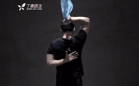 像上圖小哥一樣,慢慢慢慢慢慢地把左手背到身後,再慢慢慢慢慢慢低把右手伸過頭。