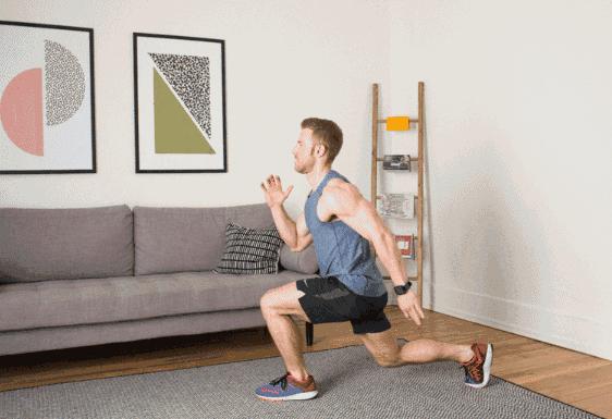 運用核心力量,左右腳弓步式跳躍。