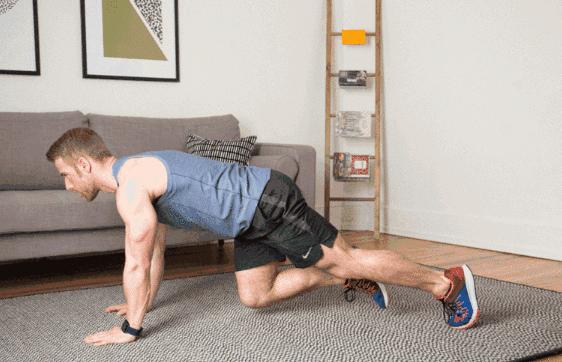 手掌撐地,雙腳蹬地,左膝蓋往右踢,右膝蓋往左踢,左右交替。