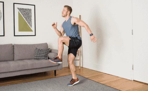 以跪式起跑的方式單膝起跳,左右交替進行。