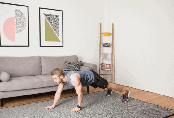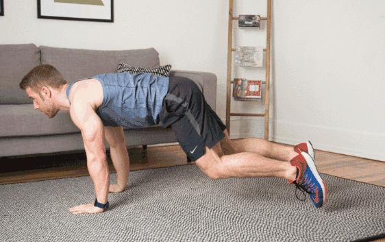 俯臥撐後起跳,並在最高處擊掌,以此循環。