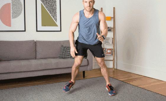 以箭步蹲的方式跳躍,左右交替。