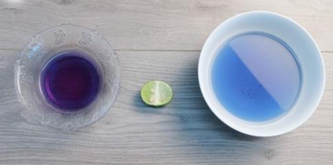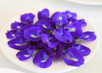 泡出來是藍色的,加入檸檬汁會變成紫色的,可以做食品染色劑或者調雞尾酒用。