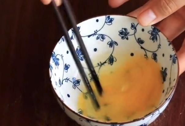 碗中打入一個雞蛋,打散備用。