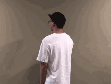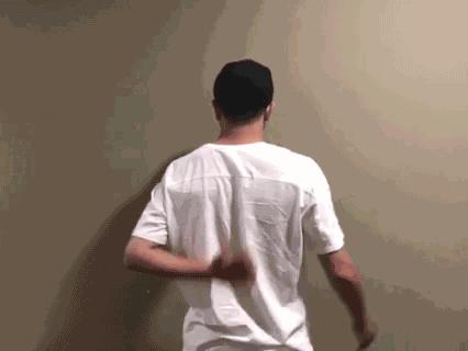 做這個動作時,你的身體、後背、手肘全部都要貼在牆上,像發條一般地進行機械式的旋轉,交替上下轉動手臂。