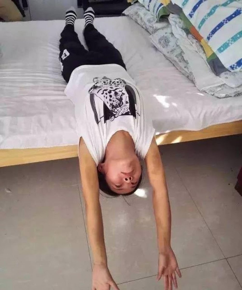 2)仰臥平躺在床上,把頭伸到床外麵,手臂向後放(也就是舉起手來), 讓肩膀離開床沿,適當增加拉伸力度了,這個動作也叫吊脖子,類似醫院裡的牽引,不過咱們這個更簡單安全,利用自身的重力拉伸脖子周圍的筋,讓頸椎恢復本來的生理弧度,從而起到疏通經絡,緩解疼痛的功效了;