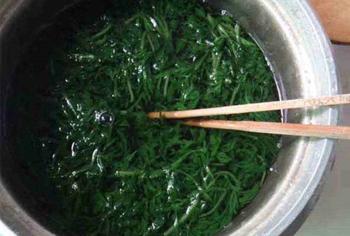 取15克幹艾葉洗淨弄碎,和3個雞蛋一起攪拌勻。
