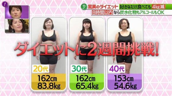 節目中還請了3位分別是,20歲、30歲、40歲的女士來做減肥誌願者,實驗期限為2週。