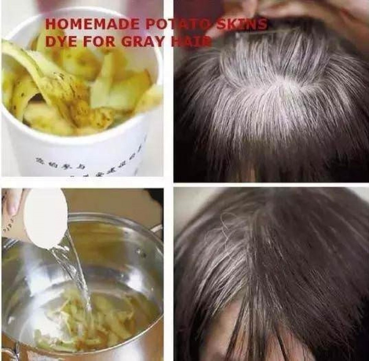 把煮過的土豆水倒出來,把皮扔掉,在用牙刷蘸點土豆水染髮(頭髮最好先洗乾淨),白髮很快就能變黑了哦~