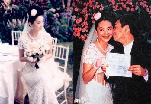 林青霞在事業最紅的時候選擇了嫁人息影, 1994年6月29日,林青霞與香港富商邢李源在美國舊金山舉行婚禮。穿著婚紗的林青霞一如既往的貌美如花。