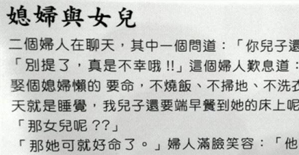 5.媳婦說經濟差回的話是:「活該你不知節約!」;女兒說經濟差回的話是:「女婿的能力太差。」