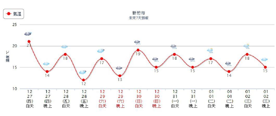 氣象局表示,這波冷氣團影響最強的時間,落在週六到下週日清晨(29至30日),中部以北低溫只有13到15度,空曠地區更下探11度!中南部雖狀況稍佳,但低溫也是落在13到16度之間,依然寒冷。氣溫驟降,天氣變化大,身邊有心血管疾病的患者、幼兒及年長者,務必要留意健康狀況。