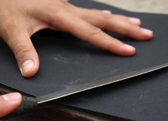 如果家裡沒有磨刀石,用砂紙也可以做出一個簡易的磨刀石。