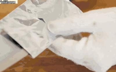 把乾淨的錫箔紙折疊一下,霧麵朝裡,然後用錫箔紙裹住刀刃,稍微用力反復擦拭幾次,速度不要過快,可以帶著手套防止割傷。