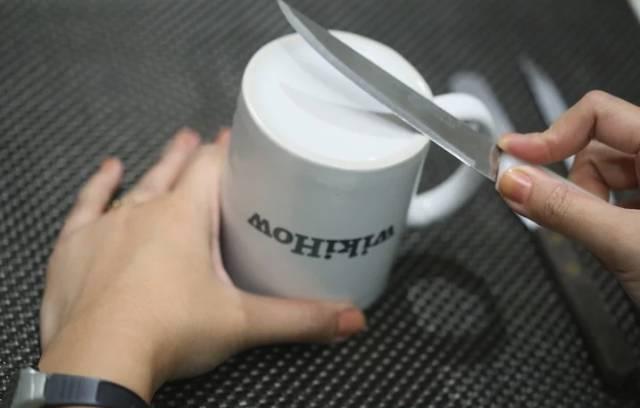 如果家裡沒有磨刀石,還可以用瓷杯瓷碗來替代,把瓷杯瓷碗倒扣過來,利用底部粗糙的小顆粒來磨刀。