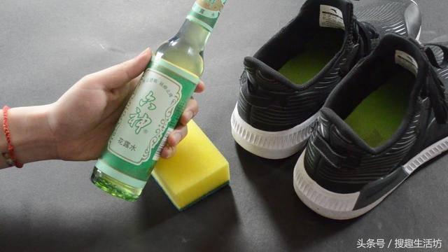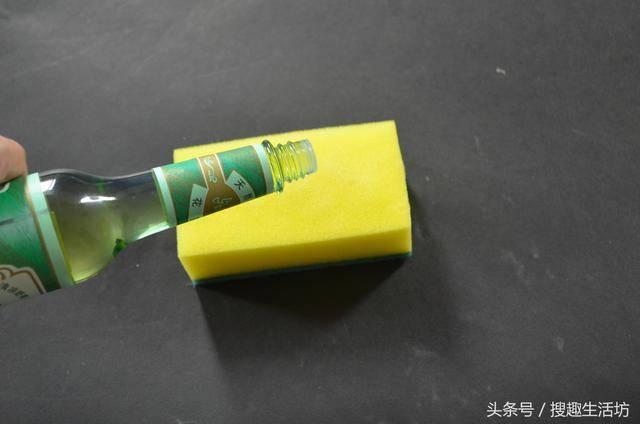 首先準備一瓶花露水和一塊百潔布,並且在百潔布上滴一些花露水。