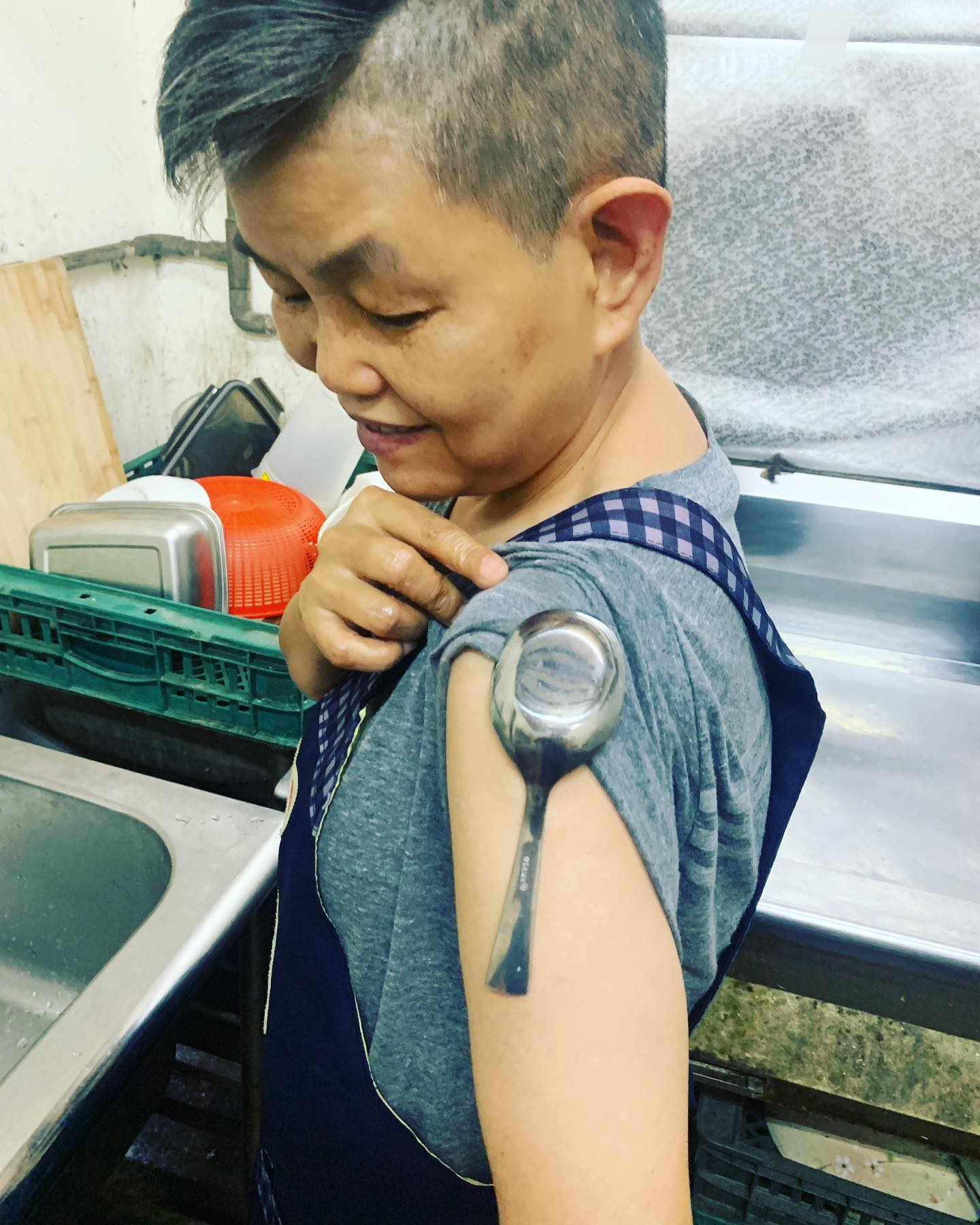 雖然黃軒醫生說的很有道理,仍有網友不改冒險精神,決定採用對照方式,為了避免黃軒醫生說的「汗垢黏住湯匙」,一個先「用酒精濕巾擦拭整條手臂」,另一個是「使用洗手乳清洗手臂」,將黏膩的汗水擦拭乾淨後再測試,輪流放上4支湯匙及兩根水果叉,沒想到兩個人的手上都能吸附,即使時間短暫也讓人驚訝不已,驚呼:「雖然手臂稍微動一下就掉了,但放湯匙上去時,仍可明顯感受到吸附的感覺!」畫面超驚人!