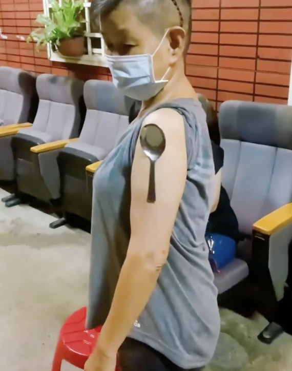 根據《ETtoday》報導,高雄一名接種莫德納疫苗的男子,因為好奇而親自實驗,沒想到真的吸住湯匙!而歌手賴銘偉也分享媽媽接種疫苗後變身「萬磁王」的影片,能夠吸附湯匙、小刀、刀片等物品,接連測驗2次都成功,讓他驚訝表示:「叛逆老母的莫德納手臂發功了!」