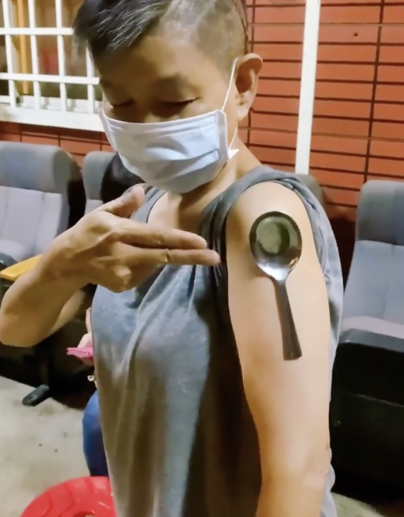 接種COVID-19疫苗不只能遠離病毒,竟然還能改變體質化身「萬磁王」?新冠疫苗不含任何金屬,但在馬來西亞卻陸續傳出民眾接種疫苗後,身體竟產生磁力,能夠吸附硬幣、鑰匙、剪刀、指甲剪等小樣的金屬物品,更聲稱自己的手臂被磁力吸引「可以吸附鐵製餐具」。隨著案例越來越多,台灣新北汐止一名婦人及高雄一名男子,也出現可以「吸湯匙」的情況,引發網友熱議真假!
