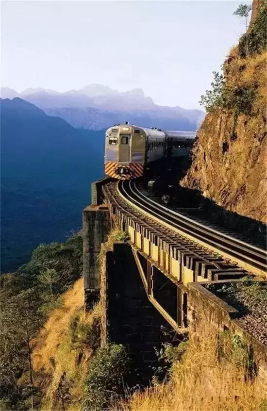 ▼巴西庫里提巴,懸崖邊上的鐵路:這條鐵路非常特別,一面是高山,一面是萬丈深淵,驚險又刺激。