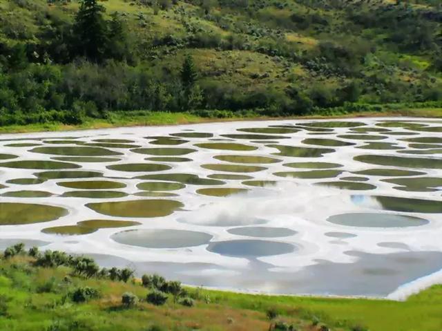 ▼加拿大,斑點湖:一年中斑點湖的顏色不斷變化,湖面的斑點很有特色。