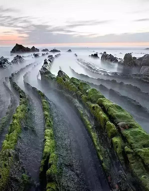 ▼越南,韓英洞:經過洪水的無數次沖刷,韓英洞被打磨成扇貝形。一排排帶凹槽的石灰岩猶如石化的瀑布,在綠色藻類的裝飾下顯得生機勃勃。