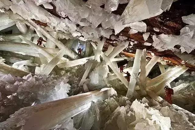 ▼墨西哥,奈卡礦井水晶洞:洞內有170多根巨大、發光的方尖石柱。