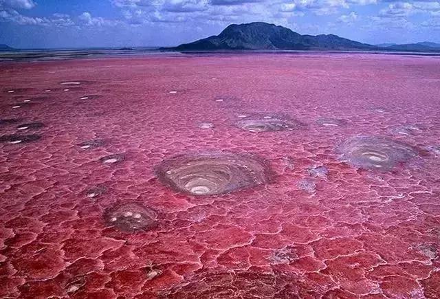 ▼坦尚尼亞,納特龍湖:隨著水位的變化,納特龍湖水呈現白色、粉紅色或豆綠色,非常漂亮。