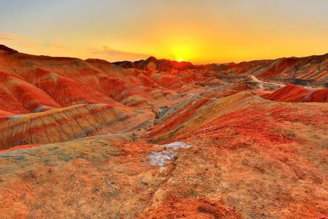 ▼中國,丹霞地貌:丹霞地貌以層理交錯、岩壁陡峭、氣勢磅礴、造型奇特、色彩斑斕而稱奇。