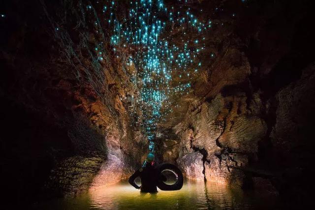 ▼紐西蘭,螢火蟲洞:這是一個由石灰岩層構成的溶洞,裡面有很多鐘乳石和石筍,還有很多螢火蟲。