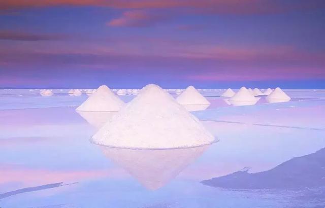 ▼玻利維亞,烏尤尼鹽沼:這是約4萬年前的巨大湖泊乾涸後形成的。雨季的烏尤尼鹽沼表面就像光滑的鏡面。