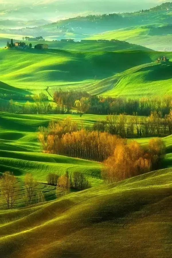 ▼義大利,托斯卡納:這是世界上最美的鄉村之一,起伏不大的山丘,在夕陽或朝霞的映照下美麗無比。