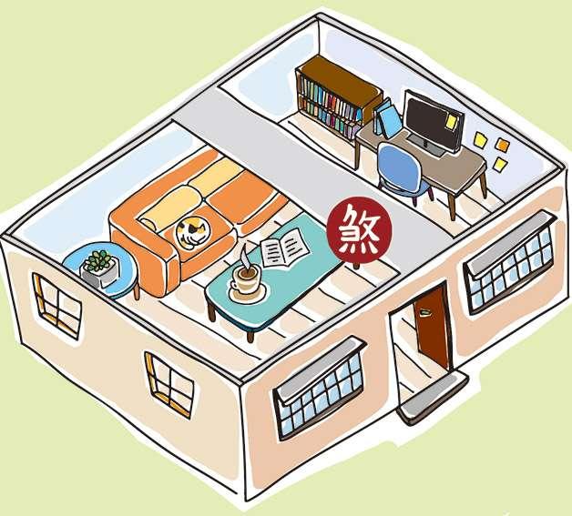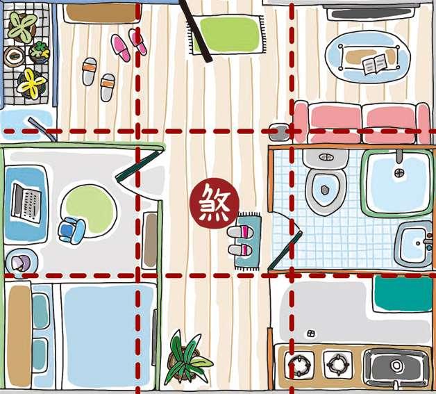 化解法:如果無法改變房子格局,就在中宮部位加裝燈光照明或綠色植物以確保此區域的氣流能夠循環。