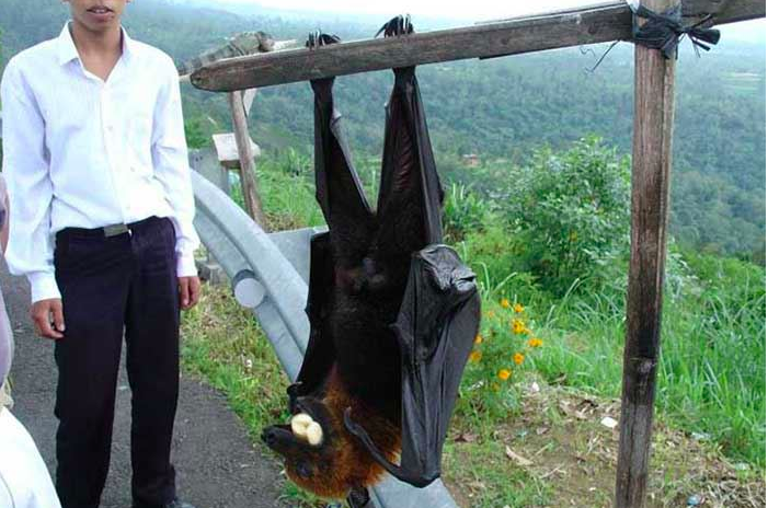 狐蝠。在新幾內亞發現這種吃水果的蝙蝠,它是地球上最大的蝙蝠。