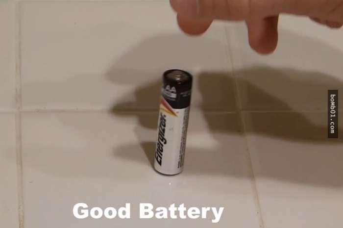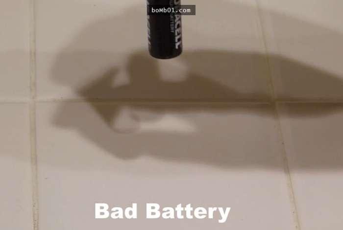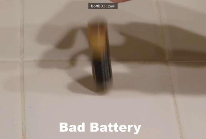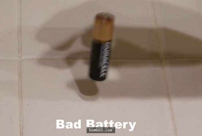 ▼壞電池會一直彈跳,發出混濁的聲音,甚至倒下。