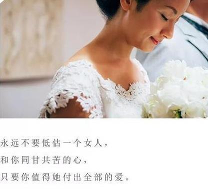 男人永遠不要低估一個女人,和你同甘共苦的決心,但前提是:當她渴望一個安穩的家時,你可以牽著她的手,一起步入婚姻的殿堂,而不是讓她在無邊的等待中關上心門;