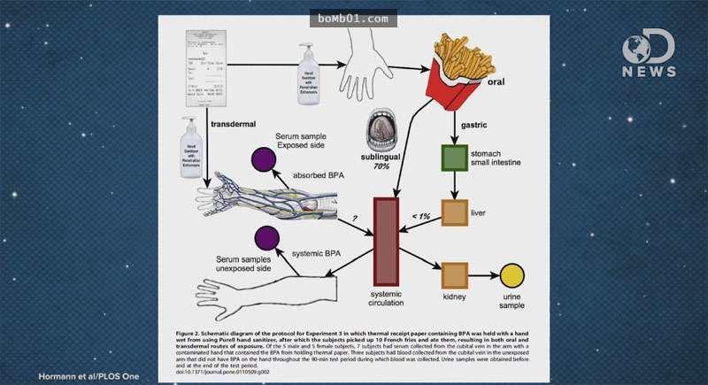 ▼原因在於,乾洗手中所含的化學成分,會造成環境中親脂性的成分更佳容易的侵入你的身體內,而雙酚A就是其中一種,在研究中指出,使用乾洗手的實驗對照組,對於雙酚A的吸收量明顯多出一倍。