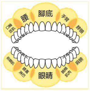 這些部位的肌肉都與咬合、咀嚼時動用到的肌肉相互牽連,因此透過按摩牙齦,就能同時增加上圖反射區的微血管流量,同時也能讓肌肉溫度提高,並且刺激淋巴循環加速,以此達到提升免疫力,消除痠痛、提升代謝的效果。